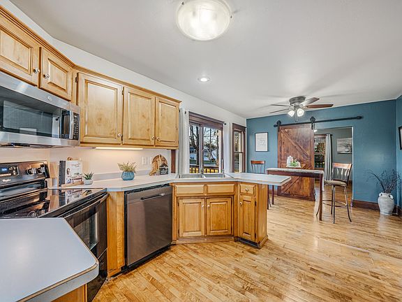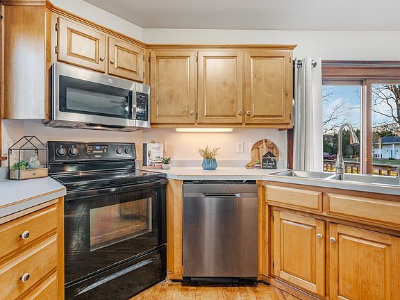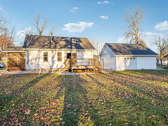 Welcome home to this inviting 2-bedroom, 1-bath property featuring classic charm and modern updates throughout. The main level boasts beautiful hardwood floors, cozy living room, kitchen with ample cabinet space and included appliances for a move-in ready experience. Step through the patio doors to a spacious deck overlooking the large .36-acre backyard. There is a generous size screened in front porch. The detached 2.5-car garage is finished and heated, complete with an overhead door to the backyard. The unfinished basement and walk-up attic provide excellent opportunities for future expansion or customization, allowing you to make this home truly your own. Easy access to the Highway.