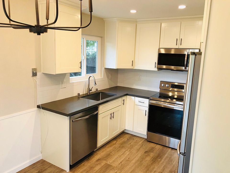 2 large bedrooms and 1 baths Kitchen with brand new stainless steel appliances, Lazy Susan, and in-unit laundry room . Unit is completely remodeled with new kitchen, bathrooms, dual paned windows, flooring, recessed lighting, modern fireplace, and new plumbing. Private backyard One-car Garage Desirable Los Altos residential location (cul-de-sac) with top schools and walking distance to shopping Please do not disturb current occupants. Visit by appointment only. Owner pays for water and Gardner Renter responsible for gas/electricity and garbage collection