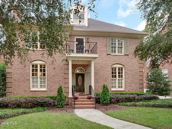 Nothing Could Be Finer... experience the most prestigious drive to your exceptional home as you meander down a tree lined street with views of the ICWW and Dye Golf course. Once you arrive you will experience a well maintained, beautiful Georgian style home located on a peaceful cul de sac street in the Villas of Landfall. This amazing home is in a perfect location to walk to the updated Dye clubhouse or Overlook Park, where you can sit peacefully overlooking the ICWW. Not only is the lifestyle of this home extraordinary, but the home is as well, boasting a craftsman style with soaring high ceilings, 9-foot door openings and attention to detail with extensive crown moldings, chair rail, built ins, butler's pantry, hardwood floors, and so much more! The floor plan is light and airy and offers space for any occasion. Enjoy a white kitchen with all stainless Kitchen Aide appliances, quartz counter tops, marble backsplash, paneled dishwasher and paneled subzero refrigerator. You may retreat to the great room after dinner to enjoy the warmth of the gas fireplace or the entertainment of a movie on your large built in 70'' HDTV, while having a cocktail from the wet bar. Built-in-cabinets and shelves are ideal for showcasing books and family photos. Entertaining is a snap with large dining room flowing into the keeping room with adjoining Butlers Pantry. Then, if you need to get away from everyone, you may escape to the peaceful screened porch, or one of the balconies, or upper sunning deck. The primary suite is spacious featuring dual closets, sitting area and opens to a cozy balcony. Then there is a detached suite over the garage with full bath that is ideal for guests, office or 4th bedroom. There is an abundance of storage in the 700 sq ft unfinished walk-in attic and oversized 2 car garage. This home is truly a pleasure, and the yard is maintained by the HOA to allow you time to enjoy!!!! Stones throw to Wrightsville Beach, Restaurants and Mayfaire.