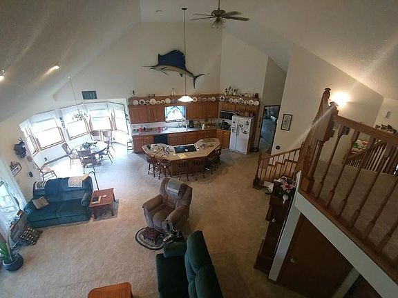 Drive up to this fabulous Victorian Style home with wraparound porch and concrete drive all on 21 acres and it looks so polished. Over 3,000 sq ft with 18' foot vaulted ceiling makes this home open and spacious. There are 3 BR 2 1/2 BA with a full unfinished basement. The kitchen is lined with solid oak cabinets and a large eat-in bar that seats 6. The lovely dining area is surrounded by windows with a lovely view of the wildlife in the backyard. An enclosed screen porch and attached deck allow plenty of room for outdoor entertaining. If you're wanting less acreage, seller open to splitting the land.