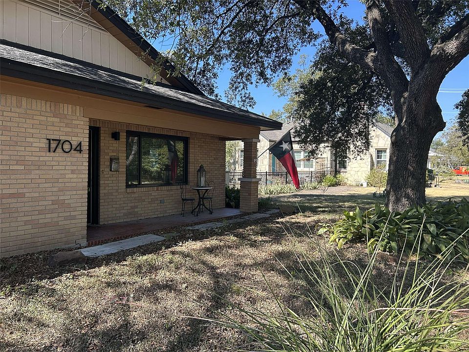 Refined finishesThree pecan treesDistinctive detailsExposed beamsCovered porchUpdated kitchen