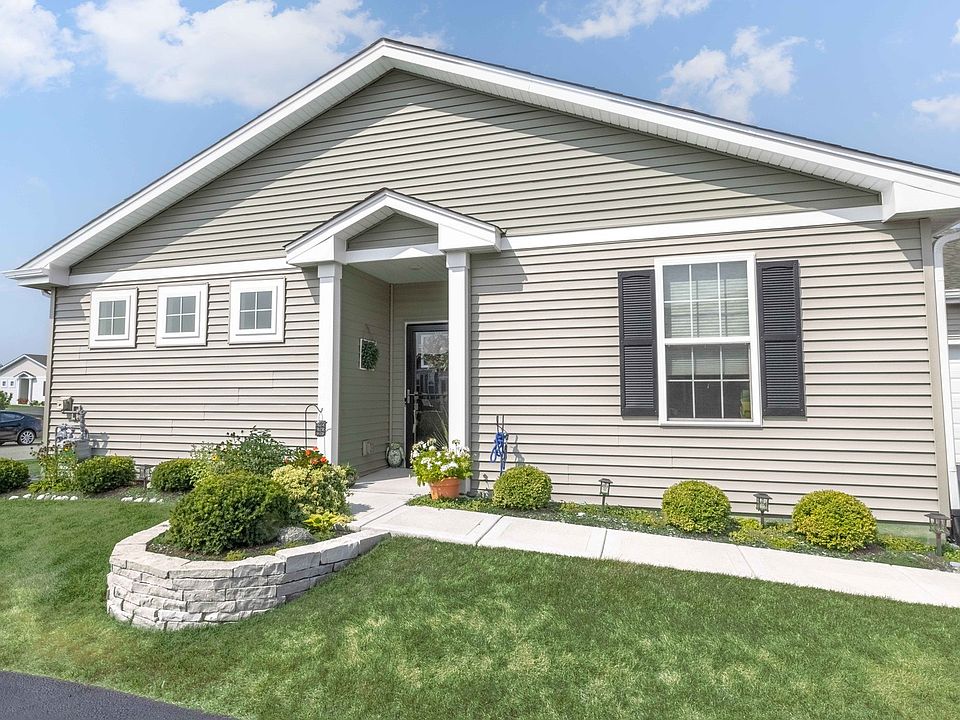 The popular Chandler model in The Carillon at Cambridge 55 + Active Adult Community, has been meticulously maintained and is in a prime location. Open floor plan from the living room, to dining room and kitchen offering Stainless Steel Appliances and a large pantry. White cabinets and a large island with a counter to sit by, offer more seating for entertainment. The large Primary Bedroom offers a primary En Suite with double bowl vanity, linen closet, walk-in shower, separate water closet and large walk-in closet. The second bedroom also has a full bathroom. Move in and enjoy all the amenities this resort style community has to offer including Clubhouse, heated indoor and outdoor pools, jacuzzi, tennis/pickle ball courts, bocce courts, billiard room, fishing ponds, walking trails, and a 3-hole golf course.
