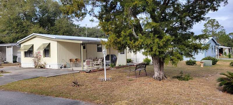 Come on down! The weather is fine! This turnkey, roomy 2 bedroom / 2 bath home with an enclosed porch for additional living space (not listed in the square footage shown) has it all. The kitchen is good size for those who like to cook and if you really like to cook with lots of appliances there is room in one of the sheds for additional storage which are located off the carport. There is a nook/dining area which leads into the living room. Beyond the living room is the enclosed porch which acts as a family room. The primary bedroom is very large with an ensuite bath with a walk-in shower and a huge closet. The guest room is also generous with a walk-in closet. There was a new A/C with Humidistat installed in 2021. The home is located on a large corner lot. This home is located in Palm Ridge a 55+ community with lots of amenities. We have a beautifully newly remodeled clubhouse where there are a variety of activities going on, a heated pool with spa, shuffleboard courts, a dog park and more. The lots are large so there is room between you and your neighbor. We are centrally located. We are close to The Villages at a lower price, close to several lakes with public boat ramps (part of the Harris Chain of Lakes) if you are a fisherman/woman. Orlando is about an hour away for a fun night out in the big city or a trip to the airport. Within an easy drive are several quaint downtown areas such as Mt Dora, Tavares and of course Leesburg where there is dining, shopping and lots of festivals and events.Stop in and see it before it's gone!