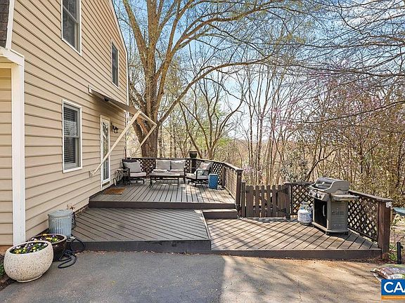 Enjoy living in Greenbrier neighborhood, while paying Albemarle County taxes! This charming home offers space to spread out, both inside and out. You can choose to relax on the generous deck or enjoy beautiful wooded views from the patio in the fully fenced in backyard. Inside, this home features main level living with a cozy living room and a dining room perfect for entertaining, a 2nd floor primary suite with updated primary bath, 2 additional bedrooms and a full bath, and a walkout basement with built in cabinetry, a wood stove, and an office/ flex area. Recent upgrades include a new HVAC in 2024, back patio pavers 2023, fence 2023, refinished wood floors in 2022, and all new kitchen appliances.