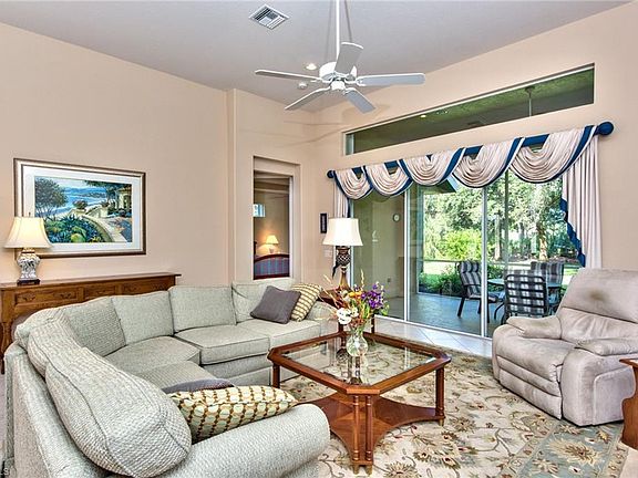 Offering the rare combination of a secluded personal sanctuary with a a vibrant Country Club community...this is SPECIAL! This beauty sports an open floor plan with towering ceilings all pointed toward a lush and delicious rear yard filled with fauna. Wide sliders open up the back of the home so that you are surrounded by this garden retreat. Master bedroom also looks out to it and offers a large walk in closet and glass block in the spacious master bath. Den easily serves as a 3rd bedroom if needed while lots of light pours into this sunny home. While the original owner has kept the home spotless and in neutral tones, imagine the exciting possibilities you can create, making the space your own! Lastly...Is there a better Country Club combination of amenities, location, and VALUE than Stonebridge? I don't thinks so! Offering bundled golf, tennis, fitness center, fine and casual dining in a terrific North Naples location, you are going to love your life! Stonebridge HOA fees are the envy of many Country Clubs. Compare and you will see why! Must see this home to fully appreciate it. Call today!