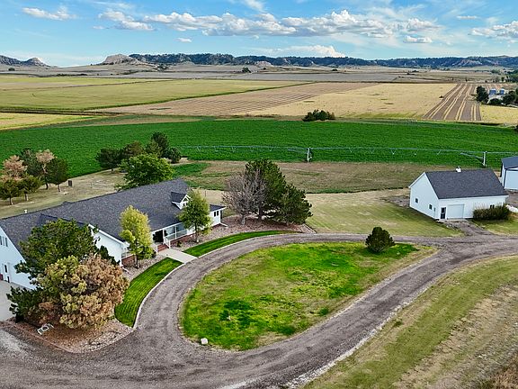 Perched atop a scenic hill and surrounded by the natural beauty of mature trees, this spacious 5-bedroom 1 nonconforming, 3.5-bath home offers breathtaking panoramic views and the privacy of +/- 12.36 sprawling acres. A true sanctuary, this property blends rural tranquility with modern comfort.This property features many mature trees bordering the nearby county road giving a very private setting. From your hilltop vantage point, you'll enjoy sweeping panoramic views of the surrounding countryside-sunrises that paint the sky, and fantastic sunsets that dip behind the bluffs. On clear days, the scenery stretches for miles, offering a peaceful and ever-changing backdrop right from your porch. Inside, you'll be welcomed by a spacious, open floor plan designed for both everyday living and entertaining. The modern kitchen is a chef's dream, featuring sleek countertops, ample cabinetry, and updated appliances, with easy access to dining and living areas. Just off the kitchen, a generously sized laundry room includes an impressive storage area-perfect for pantry items, cleaning supplies, or seasonal storage. The home boasts Five well-appointed bedrooms one non-conforming, including a large master suite that offers true retreat vibes with space for a sitting area, a walk-in closet, and a private en-suite bath. The fouradditional bedrooms are roomy and bright, ideal for family or guests. A spacious loft area provides the perfect bonus living space a playroom, home office, or media room. A full basement gives you room to grow-whether you're planning a gym, workshop, or additional living space, it's ready for your vision. Step outside and enjoy your private outdoor paradise: a wrap-around back porch provides the ideal space to relax, unwind, or entertain, and leads to a concrete patio area with a built-in fire pit-perfect for enjoying Nebraska sunsets or starry nights with friends and family. Front and back patios create multiple areas to enjoy the peace and quiet scenic views of this hilltop escape. For those who need functional space beyond the home, the property includes an attached 2-Car Garage and two outbuildings: The first one is40 x 30, fullyinsulated and heated, ideal for a workshop, year-round hobby space, or additional storage. The second building is 50 x 30 and features a dirt floor, perfect for equipment, livestock, or agricultural use. Whether you're dreaming of a hobby farm, equestrian property, need space for animals and equipment, or simply want to enjoy wide-open views and peaceful surroundings, this one-of-a-kind Gering property has everything you need-and more. Scotts Bluff County, Nebraska offers a wide range of recreational opportunities, especially for outdoor enthusiasts. The area is known for its stunning landscapes, including Scotts Bluff National Monument and the Wildcat Hills State Recreation Area, which feature scenic overlooks, hiking and biking trails, and opportunities for wildlife viewing. For hunters, the Wildcat Hills and surrounding lands provide excellent game including mule deer, white-tailed deer, wild turkey, and upland birds such as pheasants and grouse. Fishing is popular at local lakes and reservoirs such as Bridgeport State Recreation Area and portions of the North Platte River, where anglers can find walleye, catfish, bass, and trout. Families can enjoy local parks, paved trails like the Monument Valley Pathway, and various camping, swimming, and golfing options around Scottsbluff and Gering. With its mix of prairie, river, and rugged bluff terrain, the county offers year-round access to some of western Nebraska's best outdoor recreation. All owned Mineral rights will convey. Located in the scenic North Platte River Valley of western Nebraska, Gering is known for its breathtaking landscapes, small-town charm, and rich agricultural heritage. Nestled near the foot of the Wildcat Hills and just minutes from the iconic Scotts Bluff National Monument, the area offers some of the most picturesque views in the state-from rolling hills and rocky bluffs to wide-open plains and expansive skies. Climate in Gering features the best of all four seasons. You'll experience warm, sunny summers perfect for outdoor living, gardening, or enjoying your land, and crisp, snowy winters that transform the region into a serene, quiet retreat. Spring and fall are especially beautiful, bringing vibrant colors, mild temperatures, and fresh air that's ideal for enjoying the outdoors year-round. Gering offers the perfect blend of rural living and natural beauty-without sacrificing convenience. It's a place where you can truly stretch out, breathe deep, and connect with the land. This property is conveniently located just far enough away from the surrounding cities that it provides the ideal private country living experience while only being a short distance from all the necessities. 9.5 miles from Scottsbluff, NE 5.5 miles from Gering, NE 94 miles from Cheyenne, WY 193 miles from Denver, CO Closest Regional Airport is Western Nebraska Regional Airport in Scottsbluff.
