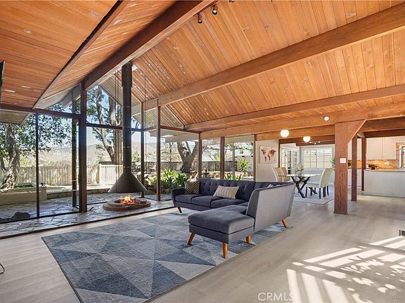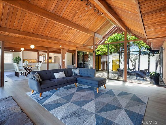 Step into a piece of architectural history with this spectacular Mid-Century Modern home, built by the renowned Joseph Eichler and nestled within the exclusive Balboa Highlands enclave of Granada Hills. This iconic 5-bedroom, 2-bathroom residence perfectly blends Eichler’s signature design with modern comfort, offering over 2,000 square feet of open-concept living space on a generous .27-acre lot. A striking courtyard atrium welcomes you, setting the stage for the seamless indoor-outdoor harmony that Eichler homes are famous for. Sunlight comes through expansive floor-to-ceiling windows, illuminating clean architectural lines and original design elements that preserve its timeless character. The grand living and dining area, anchored by a dramatic floating fireplace, seamlessly extends into the expansive backyard oasis, where breathtaking, unobstructed views take center stage. A sprawling deck, gracefully wrapping around a majestic mature tree, creates a serene retreat—perfect for relaxation or entertaining amidst a stunning panoramic backdrop. The primary suite offers a tranquil escape with a private bath and a walk-in closet, while additional bedrooms provide ample space for family, guests, home office and an exercise room. This is a rare opportunity to own a true mid-century gem, where every detail celebrates Eichler’s vision of elegant simplicity, light-filled spaces, and connection to nature. Don't miss your chance to own this historic architectural treasure!