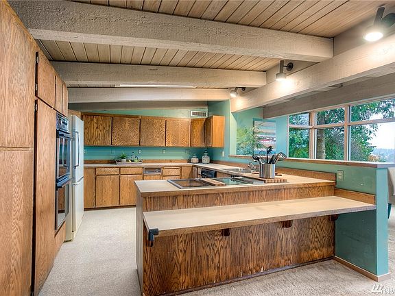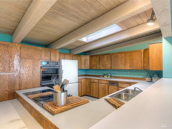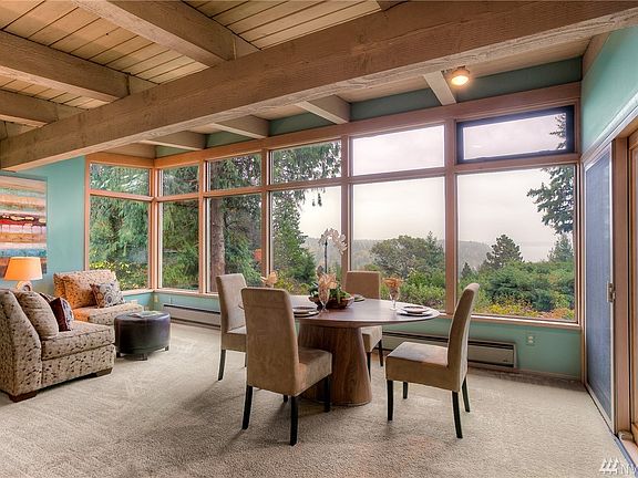 Mid century stunner on fabulous shy-acre lot w/unobstructed views of Mts. Rainier & Adams. Custom features include copper faced fireplace w/stone mantel, exposed beam ceilings, W facing gourmet kitch designed to capitalize on incredible views of Puget Sound & NP Valley. Huge patio off family & living rm to soak in summer sun. Oversized lot w/sub-division potential (buyer to verify)Stroll 17 acres of coveted Puget Sound waterfront w/Lot A beach rights, explore NP Cove & enjoy the tennis courts.
