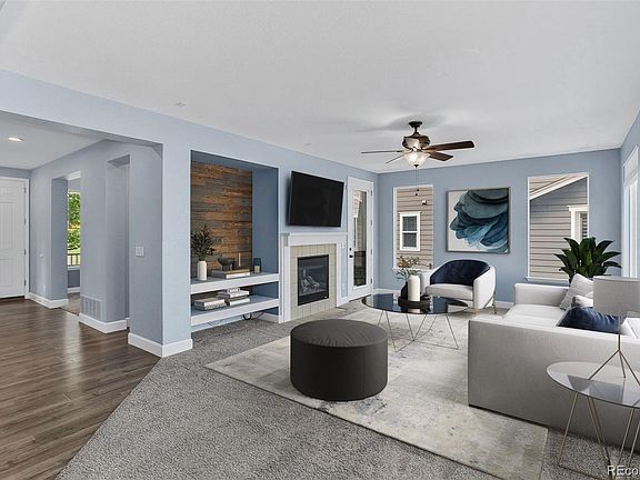 House Hunting? Add this big beauty to your tour and you won't be disappointed. You will notice the fantastic curb appeal of this beautiful, welcoming property, directly across the street from a neighborhood park! Mature landscaping, privacy and shade, lead you to the peaceful covered front porch. Through the front door be wowed by a beautiful formal dining area that could easily transform into a den or study. Across the foyer enjoy a large flex space perfect for an office or play area. The kitchen and adjoining family area are something to behold. Let the warm, bright, flowing, expanse of this space sink in as you check out the custom granite counters and back splash, stainless appliances, huge kitchen island, the massive amount of cabinet and counter space, and the eat in nook area. The kitchen flows into grand family area with a warm fireplace, huge windows that look into the back patio/yard, and access to the covered ranch style front porch. Retreat to your oasis at home in a gorgeous primary bedroom retreat with another fireplace, coved ceilings, an large ensuite 5 piece bath and his and hers walk in closet. The upstairs bedrooms are large, large, with tons of natural light and room to grow. A second large upstairs bath offers two sinks and a separate shower/toilet area. Wait! there is more, the partially finished basement offers a massive equity builder option, the large garage offers tons of storage space with high ceilings and paved alley access, the large back yard is fully fenced, and is zero maintenance artificial turf. This home is clean! well maintained, ready to go and offers custom paint, lighting, and flooring throughout. All of this with a serene setting, featuring a park across the street, and easy access to a rec center and pool, recreation, schools, restaurants, shopping, entertainment and commerce. Add this property to your showing list!