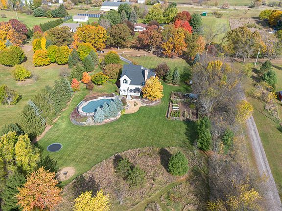 ***Offer Received-Final & Best offers due by 4pm on Sunday Oct. 26th*** Absolutely breathtaking are the first words that come to mind when describing this stunning contemporary 2 story home with 2,394' above grade, 4 bedrooms, 2. 5 bathrooms on 2.15 acres with panoramic views in all directions. You'll fall in love with this gorgeous home before you even walk inside of it! The curb appeal will impress the most prudent of buyers with its beautiful design, professional landscaping and wrap around porch. Upon entry, you'll be greeted with hardwood flooring, a recreational den, perfect as it is or could be converted to an office/formal living room. The detailed custom built-ins stand out, along with the family room's vaulted ceiling and wood-burning fireplace. The gourmet kitchen is perfect for the chef in the family with its high-end SSA's, hickory cabinetry, center island, granite countertops and ceramic backsplash. The spacious formal dining room provides an ideal setting for gatherings with friends, and the convenience of main floor laundry facilities will be highly valued. The spacious primary suite features vaulted ceilings and custom-designed walk-in closets, while the primary bathroom includes a jetted bathtub and a separate shower. Other features include sold wood panel doors throughout, a synthetic rear deck-perfect for outdoor enjoyment and don't forget about the salt water pool w/new liner! There's a whole house 24kw Generac generator, tankless hot water tank, a full basement awaiting your finishing touches, a 2 car attached garage, large vegetable garden, new roof and newer garage doors! There's High Speed Internet available and all appliances are included!