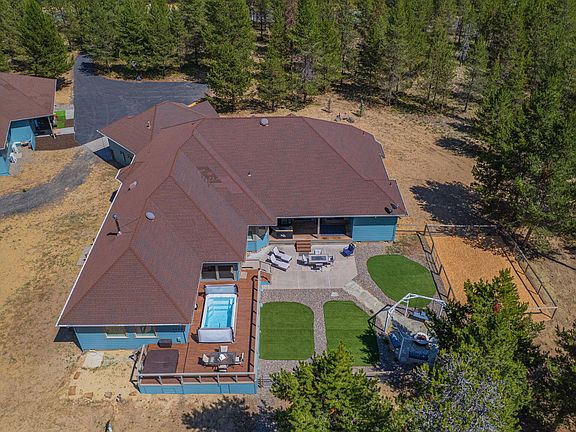 Welcome to aprox.5500 sq feet of single level living in this spectacular multigenerational oasis just south of Bend and minutes from Sunriver. Enjoy the main home 4,038 sq ft of single-level living on 18.67 private acres where the elk & the deer are regular visitors. There is a detached 1800 sq ft.-ADU/ shop - also single level. Inside the home you will find open living & dining areas w/ 9' ceilings, a gourmet kitchen featuring a 48''range, 34 cu ft fridge/freezer, prep station w/ sink, beverage fridge, wine cooler and pass-through to the outdoor BBQ. Flexible spaces include a breakfast nook, family room, bonus room, all-season room & office. The expansive primary suite offers DUAL bathrooms, and three walk-in closets. Two guest bedrooms w/ their own full bath are on the opposite wing. Outside: swim spa, hot tub, fire pit, enclosed pet area, gated entry, 3-car garage, RV parking, and 1,800 sq ft ADU/shop w/ 400-amp service and versatile bonus rooms. This is truly a must-see property!