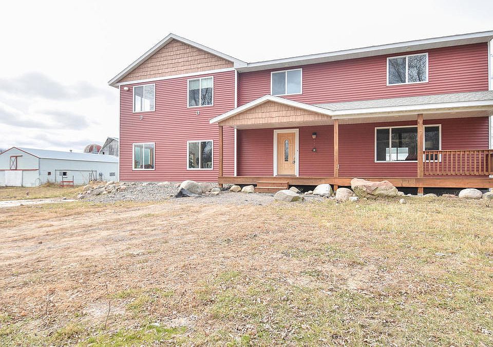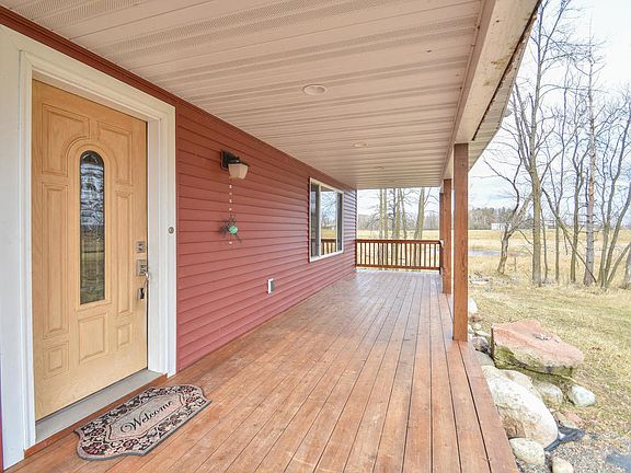 100 beautiful acres avail! Make dreams come true! Stunning country home just outside of town. Enjoy morning coffee on your 32 x 6 covered front porch. Home features beautiful hardwood floors from 5 different species. Spacious rooms, tall ceilings, lots of natural light. 2-Story Solarium with Amish Wood Stove. Laundry on both main floor and upper level. Shower in the mud room for easy clean up from the barn. Oversized Kitchen has opportunity to be grand, with large pantry, center island. Nice Sized Bedrooms on Upper Level plus an Office area (formerly used as a Bedroom, no closet). Master Suite includes large bath with separate tub/shower and also separate private sitting area. Room in unfinished basement to add future finished sq footage for a total of over 4400 finished! Outbuildings in fair condition: include 34 x 64 Barn with lean to, 32 x 60 addition, loafing shed, 32 x 60 storage shed.