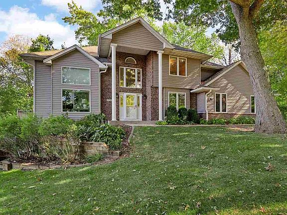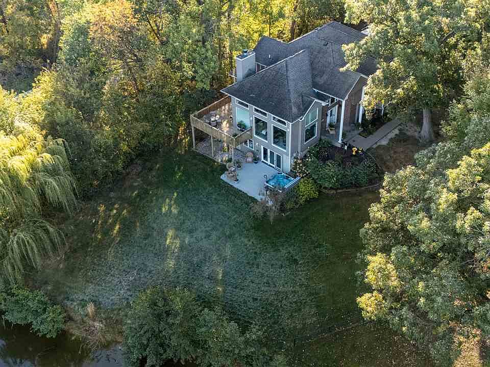 Discover this one-of-a-kind Coralville property offering privacy, peace, and nature just minutes from UIHC Hospitals & Clinics. Nestled on nearly an acre overlooking a large pond, this home feels like a private retreat with tranquil views and abundant wildlife. A 2-story foyer opens to a spacious living room with a 14-foot wall of windows, LVP flooring, and a gas fireplace. The kitchen features cherry cabinetry, quartz countertops, tile backsplash, and stainless steel appliances including a 5-burner gas cooktop, built-in oven, microwave, and French door refrigerator. The adjoining dining area opens to a screened porch and wraparound deck overlooking the pond. The main level also offers a flexible office/formal dining room, half bath, and laundry room with storage. Upstairs includes the primary suite with walk-in closet, vaulted ceiling, and renovated bath, plus two additional bedrooms and an updated main bath. The walkout lower level offers a family room, full bath, bonus/storage room, utility area, and walkout to a patio with a hot tub. Enjoy the NewAge garage storage system and two garden sheds included as-is. Recent updates include new living room windows and more.