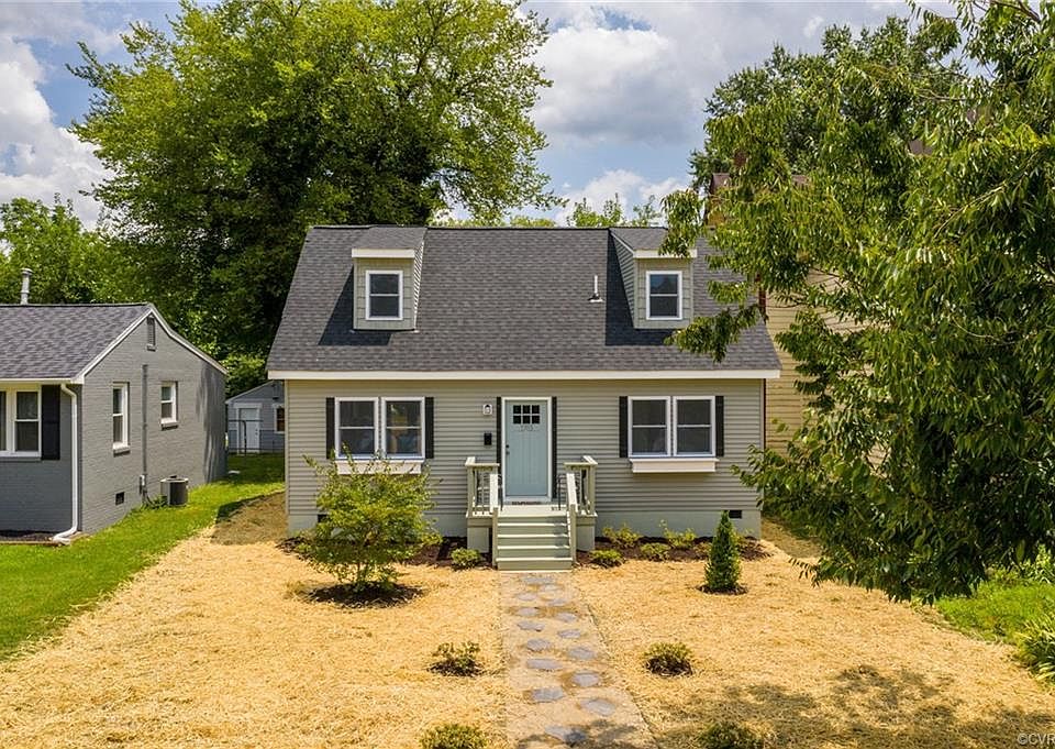 This beautiful 3 bedroom 2.5 bath newly constructed Cape in Richmond's Chestnut Hill is full of charm & MOVE IN READY! Upon entry you'll fall in love with the open floor plan set up with tons of natural light. Spacious family room with hardwood flooring & recessed lighting. The eat-in kitchen features hardwood flooring, stainless steel appliances, center island, butcher-block counters, tile backsplash & back porch access. Home office with hardwood flooring & double window. 1st floor primary come complete with hardwood flooring, sliding door closet & private bath with tile floors, 2 vanities & tub/shower combo. Upstairs are 2 additional bedrooms both with new wall to wall carpet & sliding door closets. There is also another full bath with tile floor, single vanity & tub/shower combo. There is a utility room with tile flooring & washer/dryer hookup. NEW CONSTRUCTION HOME with NEW EVERYTHING! Freshly painted interior, freshly landscaped & seeded, fenced in back yard, on street & off street parking, ALL NEW FLOORING THROUGHOUT, NEW HEAT PUMP/HVAC, NEW ROOF, NEW maintenance free vinyl siding, plus so much more. Conveniently located in historic downtown. Won't last long!