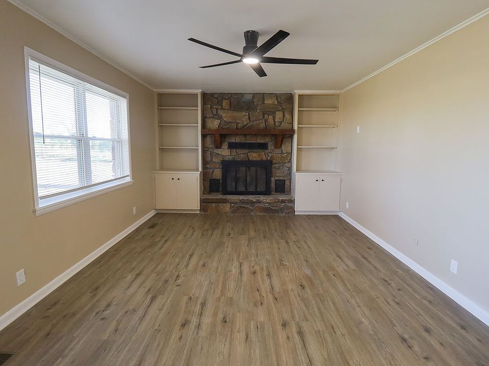 Fenced yardBuilt-in shelvingRecently renovatedFresh paintStone fireplaceUpdated kitchenNew lvp flooring
