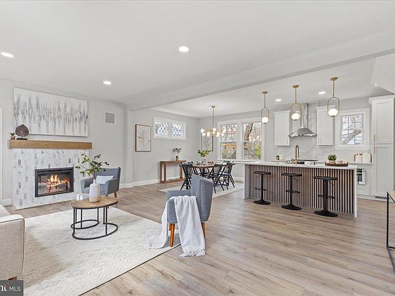 Relisted with an improved price and enhanced kitchen storage! Welcome to 1705 Corwin Drive, a recently expanded and beautifully renovated 5-bedroom, 3-bathroom home offering 2,459 square feet of exquisite living space in the sought-after Woodside Park neighborhood. Thoughtfully redesigned with modern finishes and high-end upgrades, this home perfectly blends timeless character with contemporary sophistication. The brand-new owner’s suite addition is a true retreat, boasting soaring vaulted ceilings and a spa-like ensuite bath with stunning custom tile work, a spacious walk-in shower, a freestanding soaking tub, a double vanity, and an LED anti-fog mirror. Designed for both luxury and relaxation, this private sanctuary is the perfect place to unwind. At the heart of the home is the fully renovated gourmet kitchen, showcasing sleek quartz countertops with a waterfall-edge island that doubles as a breakfast bar, a matching quartz backsplash, a farmhouse sink, a drawer microwave, and a professional-grade range hood. Modern lighting throughout enhances the home’s stylish ambiance, while the open-concept living and dining areas feature an elegant electric fireplace with a striking tile surround, adding both warmth and sophistication. Beyond the five spacious bedrooms, a bright first-floor home office provides the perfect space for productivity. The additional two full bathrooms have been beautifully renovated with high-end finishes and contemporary fixtures, ensuring both style and functionality. Step outside to a newly built deck overlooking the fully fenced backyard, an ideal setting for entertaining or quiet relaxation. A brand-new concrete driveway leads to the attached one-car garage, while a second gravel driveway provides additional off-street parking or the perfect spot for RV or boat storage. Additional upgrades include new architectural shingles, gutters, select Hardie siding and windows, a nearly new Lennox high-efficiency HVAC system (manufactured in 2022), and a brand-new high-efficiency tankless water heater—offering both energy efficiency and long-term comfort. Located just 1.4 miles from the Silver Spring Metro Station and minutes from downtown Silver Spring’s vibrant shopping, dining, and entertainment, this move-in-ready home is the perfect balance of style, convenience, and functionality. Don’t miss this rare opportunity—schedule your private tour today!