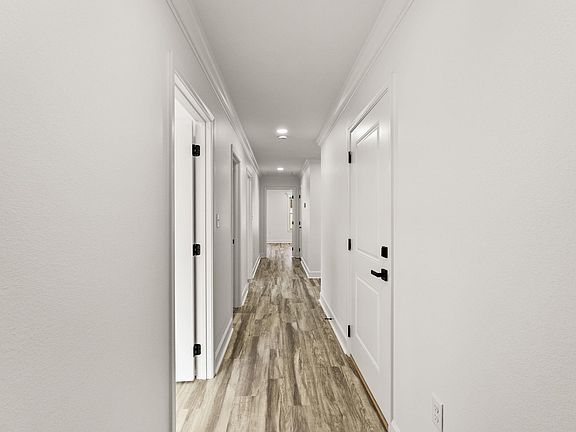 Deep linen closetCrown trimCustom tile walk-in showerDouble-door closet with built-insBlack bronze fixturesLarge picture windowCounter-bar seating