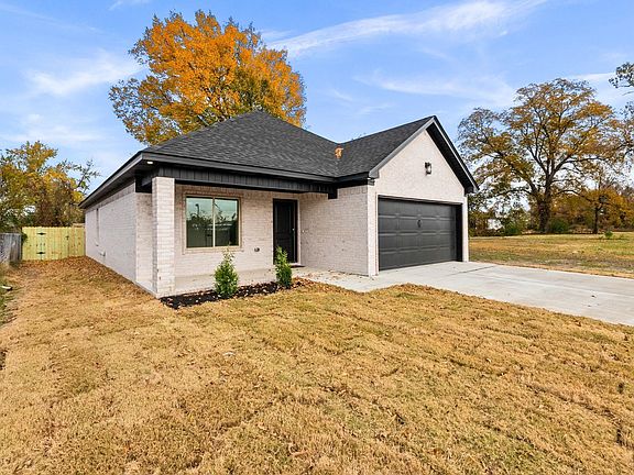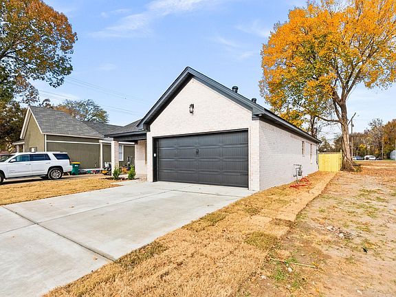 Beautiful antiqued all-brick, maintenance-free home featuring dark soffit and fascia accents, landscaping, and a 15’ x 6’ covered brick porch with wood-lined ceiling and under-eave lighting. The front entry hall offers wide-plank flooring, crown trim, and recessed lighting. Front bedroom (11’2” x 9’5”) includes a double-door closet with built-ins and a large picture window. Hall bath features a granite vanity, deep linen closet, and tub/shower combo. Second bedroom (12’ x 11’2”) offers crown trim, recessed lighting, and built-ins. The master suite (13’9” x 12’2”) includes two windows, a 6’ x 5’9” walk-in closet, and a bath with granite vanity, black bronze fixtures, and a custom tile walk-in shower. The kitchen features granite counters, custom cabinetry, tile backsplash, Whirlpool appliances, counter-bar seating, and a 6’ x 3’ pantry. Living area (19’ x 13’3”) includes built-ins, recessed lighting, and backyard access. Exterior features include an 8’6” x 6’7” patio and large privacy-fenced yard with walk-thru gate.