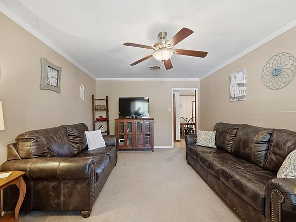 Lovingly maintained by the same owner since 1987, the home has seen thoughtful updates including replaced windows, blinds, metal garage door, exterior trim paint, and a 5-year-old HVAC system. Inside, enjoy an inviting kitchen with built-in oven, range top, dishwasher, refrigerator, breakfast bar, and double pantry. Two bedrooms feature double closets, with one bath offering a walk-in shower and the other a tub/shower combo.