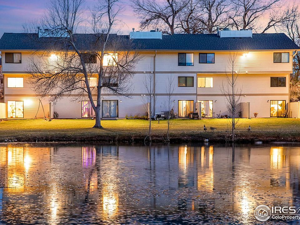 2-Bed Condo Near CSU! This move-in ready condo offers the perfect blend of modern updates and natural surroundings. Near open space with paths and trails, the property backs directly to a lake and greenbelt, creating a peaceful retreat while still being close to campus, shopping, and dining. Inside, you'll find a complete repaint, along with refinished kitchen and bath cabinets accented by new hardware. The kitchen shines with brand-new countertops and appliances. The bathrooms have also been thoughtfully upgraded. Additional improvements include new windowsills, blinds, and light fixtures throughout, plus a ceiling fan in the dining area. Flooring has been refreshed with new laminate on the main level and in the upstairs full bath, complemented by plush new carpet and pad in the bedrooms and walk-in closets. Modern touches such as new door knobs, a new water heater, and recently replaced A/C and furnace (five years old, with filter changed) add peace of mind. Beyond the home itself, residents enjoy access to a welcoming community garden - perfect for those who love to grow their own flowers, herbs, or vegetables. There is also a pool, clubhouse, and on-site laundry facility, adding convenience and opportunities for relaxation and connection. With its extensive updates, prime location, and inviting amenities, this condo is an ideal choice for anyone seeking comfort, convenience, and a connection to nature.