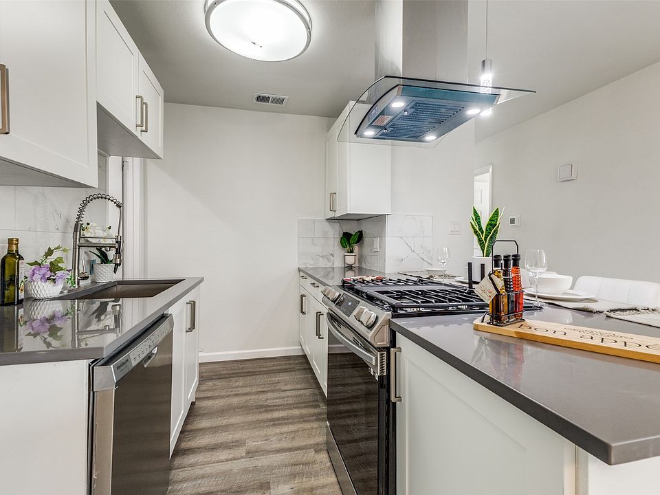 This beautifully updated 3-bedroom, 2-bathroom home is perfectly situated in the established Casa View Heights neighborhood. With easy access to Highway 635 (just 2 minutes away) and under 5 minutes from Scyene Rd. Step inside to a bright, open-concept layout filled with natural light. The interior showcases luxury vinyl flooring, fresh interior and exterior paint, and energy-efficient LED lighting throughout. The fully reimagined kitchen is a chef’s dream, featuring quartz countertops with an island, modern cabinetry, and brand-new stainless steel appliances including a gas cooktop, hood, and dishwasher. Both bathrooms have been tastefully renovated with contemporary finishes. Major upgrades include a new roof, new HVAC system, new electrical panel, new windows, and a foundation with a transferable lifetime warranty. Outside, you’ll find a covered carport with a gated entrance for added privacy and security. The backyard features a spacious storage building and a perfect picnic area to enjoy relaxing afternoons outdoors. A newly installed wood fence and covered patio complete this inviting outdoor retreat. This move-in-ready gem perfectly blends modern upgrades with timeless charm. Schedule your private tour today, this one won’t last long!