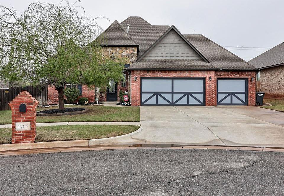 Step into this stunning home in the Moore school district, featuring an elegant staircase and a convenient office space upon entry. The open living area seamlessly connects to the spacious kitchen, boasting ample counter space, a large island with a chef's sink, and a pantry. The master bedroom on the main floor offers a private retreat with access to the back patio, complemented by a luxurious master bathroom with a shower, double sinks, a soaker tub, and a spacious closet that leads to the laundry room. Entertain effortlessly on the covered patio with a fireplace, overlooking the expansive backyard on this quiet cul-de-sac lot. Upstairs, two guest bedrooms and a well-appointed guest bath await. Additional amenities include a sprinkler system and a 3-car garage. Welcome to your new sanctuary! Ask about the assumeable loan option!