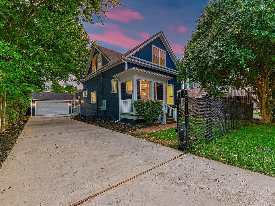 Completely renovated in summer 2025, this stunning First Ward home blends historic charm with modern luxury. Offering 3 bedrooms, 2.5 baths, and 1,622 sq ft, it features a spacious new primary suite with oversized walk-in shower, dual vanities, upgraded fixtures, and designer tile. Upstairs retreat includes full bath, laundry, and 2 versatile rooms with closets and full bath perfect for guest space, home office, or gym. Major upgrades: brand-new roof, rebuilt oversized detached garage with automatic gate and garage, leveled foundation, open-concept kitchen and living with high ceilings, 10” baseboards, LVP and tile floors, quartz counters, and stainless steel appliances. Outdoor highlights: cozy front porch, large fenced backyard, wood deck for entertaining, and long driveway with ample parking. On a full 5,000 SF lot near downtown, Heights, Sawyer Yards, hike/bike trails, dining, and shopping. Move-in ready with timeless style, modern comfort, and unbeatable location!