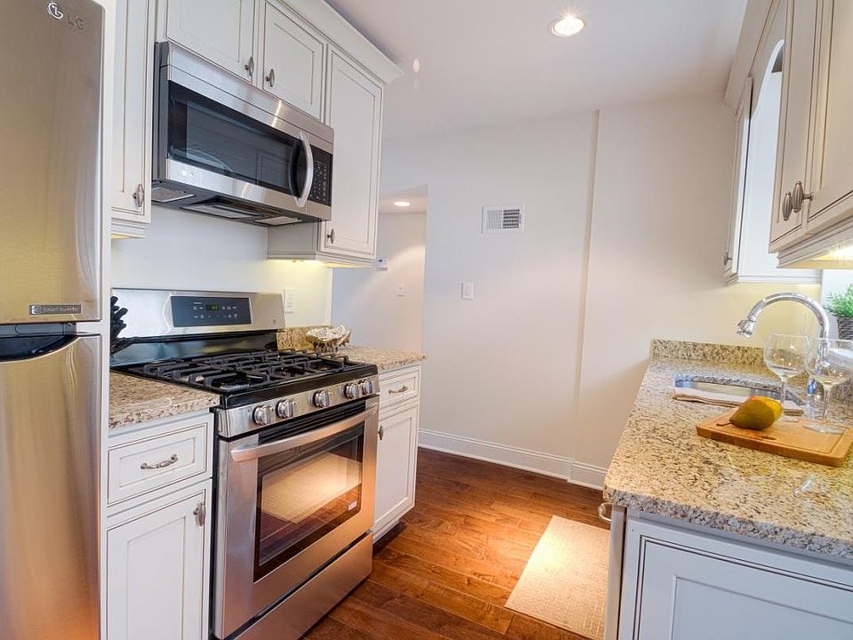 The apartments include stainless steel appliances, granite counter tops, under mount lighting for the kitchen counters, and top of the line finishes. It's a 5 burner stove ! There are hardwood floors throughout, and elegant tile work in the kitchen and bathrooms. The master bedroom has a big closet and big bay windows that allow a lot of light in. The apartments also include central heating and air conditioning. With all of the incredible things to say about whats inside the apartment, nothing can beat the amazing location it's in. Pine Street is just far back enough from the hustle and bustle to feel like you're part of the quiet neighborhood surrounding you, but close enough to anything and everything the city has to offer.