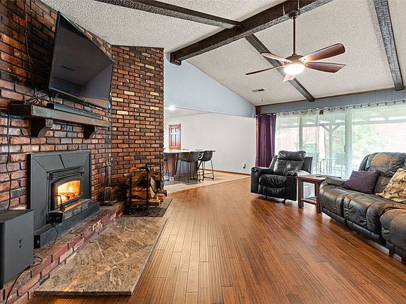 You'll love this incredibly unique home situated so close to JB Hunt Park. This home was built with entertaining in mind. You'll love cozying up to the gorgeous brick fireplace under the cathedral ceiling, but remember the heart of the home is the kitchen. Everyone can gather comfortably around the giant granite island with a striking modern exhaust. There’s so much counter space to bake and cook, plus plenty of cabinet space to tuck everything away. The party can even spill out onto the beautiful covered patio. Three large bedrooms provide ample private space, with large walk-in closets and brand new, soft carpet. This home boasts so much vintage flair but has all sorts of modern updates as well, like brand new tub/shower inserts and granite throughout. And with fully paid solar panels to convey you’ll never dread your electric bill again! On top of all the fun inside, you're just a quick walk or bike ride from JB Hunt Park and Trails which connect to the Razorback Greenway. Schedule your personal tour today!
