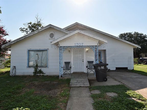 1707 Bradley is a spacious 4 bed, 2 bath home featuring a full kitchen, utility room, and a large fenced backyard. Includes two storage buildings. Both new roofing and foundation repairs are about to be underway, adding long term value. *1618 sq feet