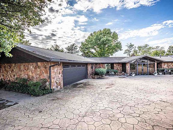 Nestled on 3.45 acres within the Lawton city limits, this rare property offers both privacy and convenience. Surrounded by an abundance of mature trees, this rock home with slate roof welcomes you with a circular drive leading to a spacious residence with exceptional potential. Enjoy 4 bedrooms, 2 living areas each with fireplace, safe room and built handicap accessible spread over approximately 3300 square feet of living space, featuring both a 2 car attached garage and two additional detached garages, along with storage shed and gazebo for all of your outdoor needs. The home experienced a freshwater line break while the owners were away, resulting in interior flooding. A professional water mediation company has already completed the cleanup, leaving the home ready for you to finish and customize to your taste. This is a unique opportunity to create your dream home in a peaceful, park-like setting. Call Tammy at 580-585-0860 today for your personal tour!