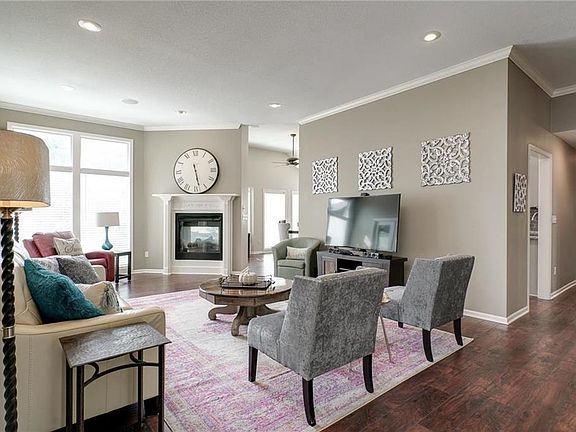 Drive up to this beautifully maintained REVERSE 1.5 story home and discover PERFECTION. Immaculately landscaped and inviting from the first look. The entry way opens to the living room with two way fireplace. UPDATED kitchen with lovely counter tops, cabinets and back splash. Stunning new floors through the main floor living area. Spacious bedrooms, closets and beautiful bathrooms. Screened in deck. Walkout Lower Level is beautifully finished with wet bar, an office and an additional bedroom. NEW roof.