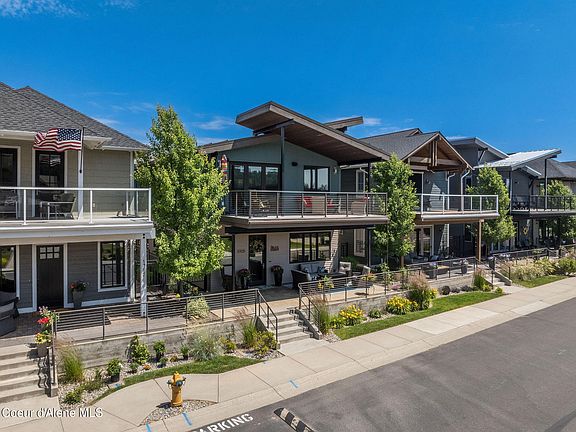 Live the North Idaho lifestyle in this beautifully designed 2-story home in the heart of Bellerive. Enjoy Spokane River views, direct access to the Centennial Trail and boardwalk, and walkability to downtown Coeur d'Alene's shops, dining, and entertainment. This 2,880 sq ft home features 4 bedrooms, 4.5 baths, and a main-floor primary suite for comfort and convenience. A dedicated home office, upper-level living room with wet bar, and covered deck offer the perfect blend of function and luxury. Thoughtfully designed for modern living and entertaining in one of CDA's most sought-after communities.