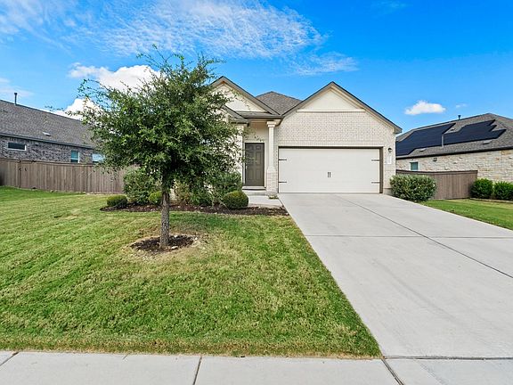 Nestled in the welcoming Bryson Community of Leander, Texas, the single-story home presents an opportunity to embrace modern living. Built in 2021, this home offers the appeal of recent construction. Offering an open floorplan with a large kitchen with island, dining and living overlooking spacious backyard. With four bedrooms, this home provides ample space for rest and rejuvenation, allowing each occupant to personalize their own haven. Three bathrooms ensure convenience and privacy, providing essential amenities to support a comfortable lifestyle. The two-car garage offers sheltered parking and additional storage, protecting your vehicles and belongings from the elements. This Leander residence is ready to be the backdrop for your life's next chapter.