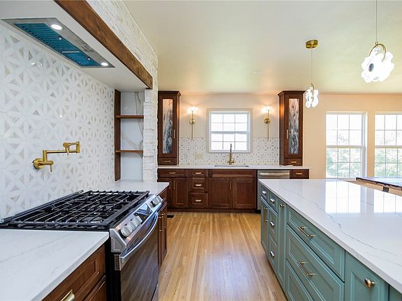 Beautiful secluded 6-bedroom, 3.5-bath home on 5 acres, perfect for privacy and scenic living. Recently refurbished with a modern touch, featuring a new kitchen with quartz countertops, new cabinets, and appliances. The home boasts wood floors and tile throughout, two primary suites on the main level, one with gas log fireplaces, and a versatile bedroom that can serve as a study or family room. The large butler’s pantry offers ample storage. Enjoy cozy evenings by the wood-burning stove or the gas fireplaces. The spacious front porch invites relaxation, while the fresh paint, new hardware, vaulted wood ceiling, and new fixtures add a touch of elegance. The property includes a 27x27 shop with a 12-foot door and cement floors, and a 3-bay loafing shed that doubles as a 3-car carport. A tranquil oasis perfect for extended living or a private retreat. Schedule your showing today!