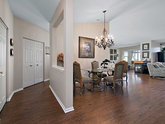 Welcome home to this beautiful and rare ranch located in the highly sought-after Lago Vista gated community for adults 55 and over! With approximately 2,016 sq. ft., this home offers a bright, open floor plan featuring wood laminate flooring throughout the main living areas and soaring cathedral ceilings over 12 feet high-a rare find in Lago Vista! The spacious kitchen includes stainless steel appliances, a large island, and a cozy eat-in area that opens seamlessly to the family room and sunroom. The sunroom features tile flooring, plenty of natural light, and access to a private yard, perfect for relaxing or entertaining. The primary bedroom is exceptionally large, boasting cathedral ceilings, double closets, and a private bath with a standing shower. A private office provides the perfect space for work or hobbies, and the second bedroom is conveniently located near a full bath with a combined tub and shower-ideal for guests. This home also features a roof equipped with solar panels, offering energy efficiency and reduced utility costs-an added modern upgrade that makes this property even more unique. Enjoy all the resort-style amenities Lago Vista has to offer, including a clubhouse, indoor and outdoor pools, walking paths, and a vibrant calendar full of social and recreational activities. Experience comfort, community, and convenience-all in one rare find in Lago Vista!