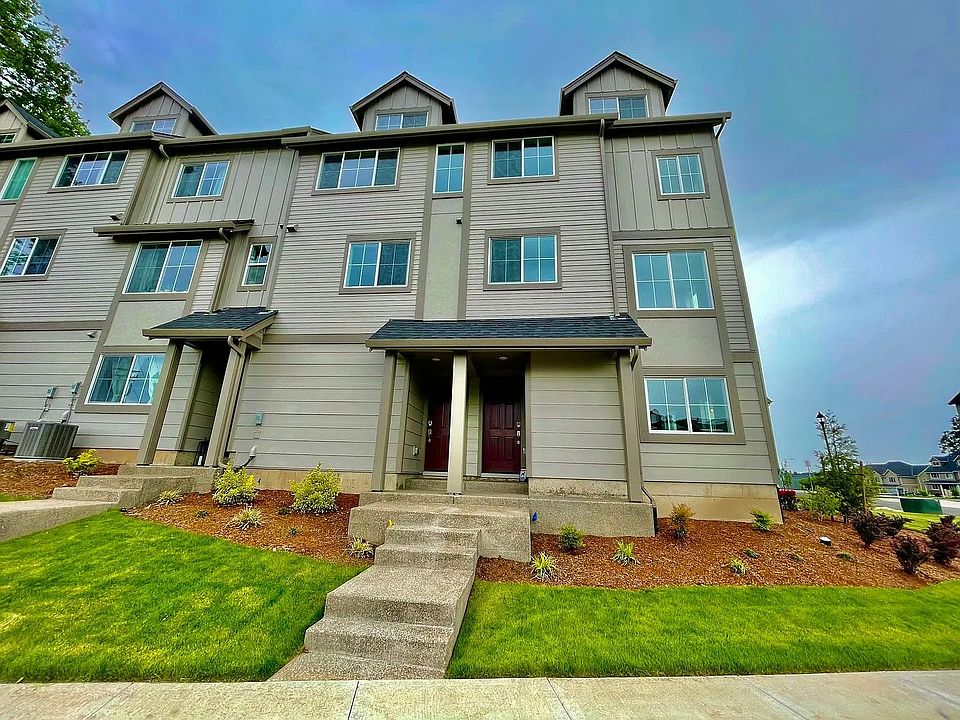 Newly built in 2022, this 3bd/2.5bath + Bonus Room townhouse is a must-see! The home is spread out over four stories with plenty of space, lots of charm, and a smart floorplan. The main floor features a large living room with an oversized Juliet balcony, space for a dining area, and a well-appointed kitchen with stainless appliances. The kitchen has plenty of counter space, a sizable pantry, a breakfast bar, and a 1/2 bath. The third floor features all three bedrooms and two full bathrooms. The primary bedroom has large windows that look out towards the hills and let in lots of natural light. It has a walk-in closet and the stackable washer/dryer is just outside. The remaining two bedrooms are both a good size and the shared bathroom features a shower/tub combo. The entire fourth floor is taken up by a bonus room perfect for an entertainment center, playroom, office or some combination of the three. Finally, the home has an oversized 2-car tandem garage with extra storage spaces. The home is across the street from Mountainside High School, minutes from Progress Ridge Town Square, and a quick drive from the vineyards and farms of the Willamette Valley. This property is available for a 12-month lease starting July 01, 2025. Don't miss the opportunity to make this beautiful townhouse your new home!!