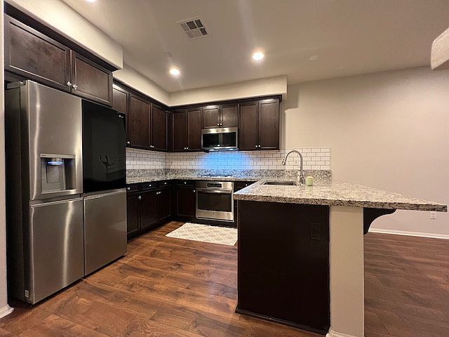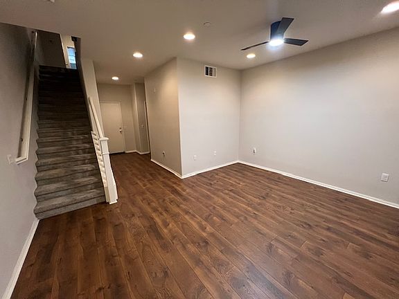 Modern 3-story townhome built in 2016 featuring 3 bedrooms plus a den and 3.5 bathrooms. This well-appointed home includes a brand-new fridge and microwave, in-unit washer and dryer, EV charger ready, epoxy-coated garage flooring, soft water system, and a tankless water heater. Enjoy year-round comfort with dual-zoned AC, dual-paned windows, and ceiling fans in nearly every room. Outdoor spaces include a private balcony and patio, and all bathrooms feature upgraded flooring. Move-in ready with thoughtful upgrades throughout.