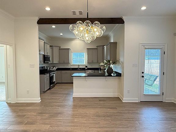 Comfort meets convenience in this 4-bedroom, 2-bath home with just under 2,000 sq. ft. of comfortable living. The open layout creates a bright, airy, and flexible living space that’s perfect for everyday life or entertaining friends. The large kitchen features granite countertops and stainless steel appliances—plenty of room to cook, gather, and make memories The split bedroom layout offers privacy, with a spacious primary suite complete with a walk-in closet that connects directly to the laundry room—designed to make daily living easier. With fresh paint and brand-new flooring throughout, the home feels modern, clean, and move-in ready. Step outside to a fully fenced backyard, extended patio area perfect for relaxing, entertaining, or simply enjoying time at home. This home blends style, comfort, and convenience—all in one inviting package.