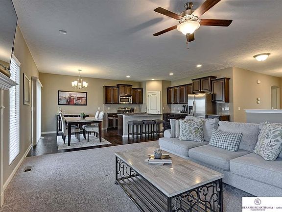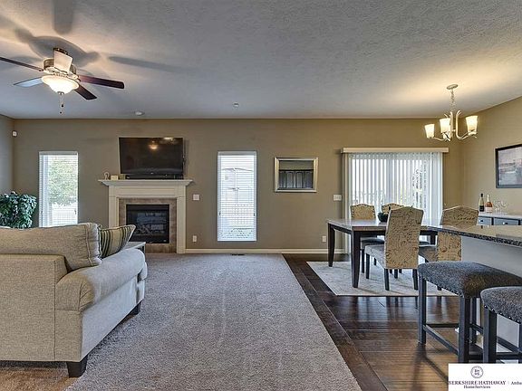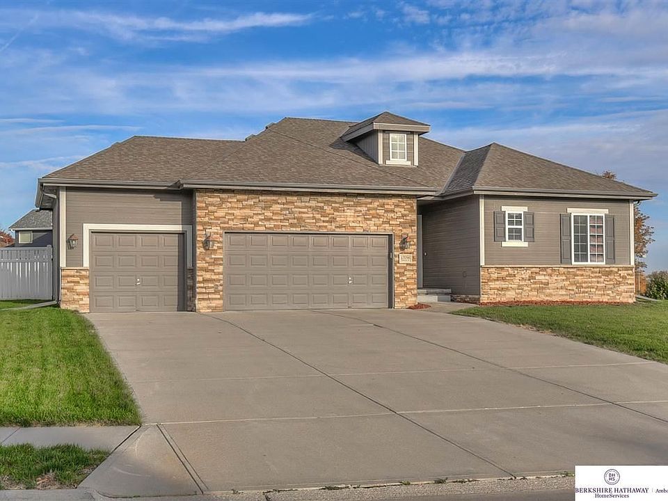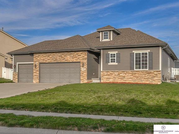 CONTRACT PENDING Beautiful corner ranch home in Elkhorn School district! 3 bed, 3 bath 3 car garage plus office and 4th non-conforming bedroom or exercise room in finished basement. This open floor plan complete with gorgeous granite countertops and island with ample cabinet space, pantry, & engineered wood floors make this kitchen an entertainers dream! Large dining area and living room with gas fireplace. Large walk-in closet in Master and full bath. Huge rec room with tons of storage and 3/4 bath in basement. Main floor laundry. Fresh paint and ready to move in! Privacy fence, sprinkler system & patio add to the overall appeal of this home.