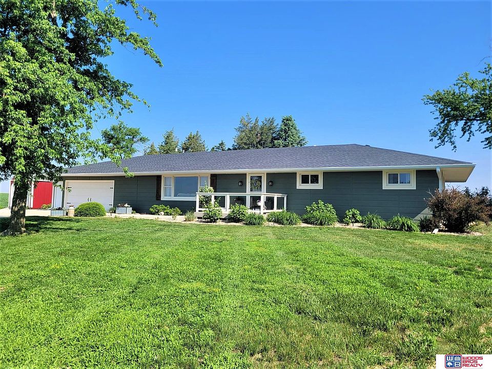 Acreage located at 1706 Road 13, this beautiful 1800 s.f. ranch is waiting for you. With over 2700 s.f. total finished living space, you will not be disappointed. Located on a 1.1 acre lot just 2.25 miles east of York. Main level features a spacious living room with built-ins and a gas fireplace. Kitchen, large dining area with patio doors to rear yard, 1st floor laundry, primary suite with a full bath, 2 additional bedrooms and another full hall bath. The basement features a large family room with built-in cabinets, 2 additional non-conforming bed/office/sewing rooms and a ¾ bath. The unfinished area consists of a large exercise room, craft room and utility room with storage. The spacious garage is 24 x 30. There is an additional 11 x 20 shed. The views from all directions of this home are amazing.