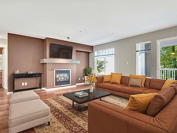 Welcome to this sought-after Heron Cove/Pillars community! This spacious; 1086 square foot, 2 bedroom + den, 2 bathroom home offers an open and bright floorplan with beautiful north-facing views of the North Shore mountains. Relax on the large 98 sqft deck and enjoy the peaceful surroundings. Features include; 8' ceilings, hardwood floors, porcelain tile, gas fireplace, and a chef's kitchen with granite countertops, stainless steel appliances, and a gas stove. Comes with 2 side-by-side parking stalls and a large secure storage locker. The complex includes a guest suite, amenity room, car wash, and children's play area. All within walking distance to Beach Grove Elementary, the off-leash dog park, and scenic strolls along the dyke. Some rooms are virtually staged.