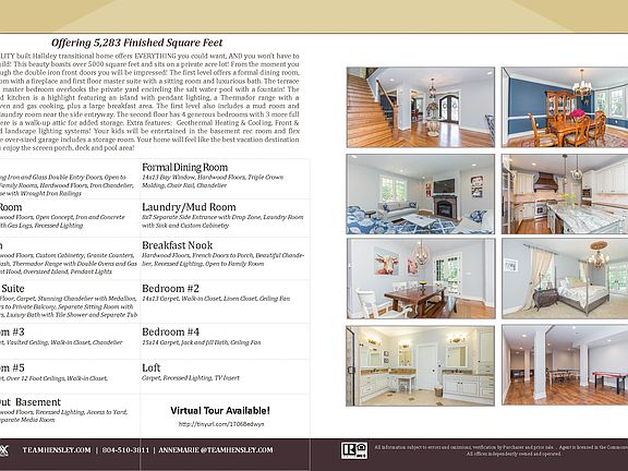 Welcome to beautiful 1706 Bedwyn Ln. in wonderful Hallsley. This is no cookie cutter home - sitting on almost 1 acre, this home features 5 bedrooms, 3 full bathrooms and 2 half bathrooms. The first floor features a master suite with a sitting room that would make a perfect office or study, a formal dining room, a family room with a fireplace, a breakfast nook that opens up to the screened porch and hardwood floors throughout the main areas. The kitchen boasts an oversized island with granite counters and an enormous butlers pantry. Upstairs are four more bedrooms and two full baths as well as a loft perfect for a hang out or craft area. Downstairs you'll see a full basement with tons of space for watching movies, hanging out or working on your fitness. The gorgeous outdoor lighting brightens up this home at night and the luxurious salt water pool is wonderful for those hot summer days. You will be in awe of the mature landscaping and handy double driveway that leads to an oversized garage. Come check out this truly unique custom home today!