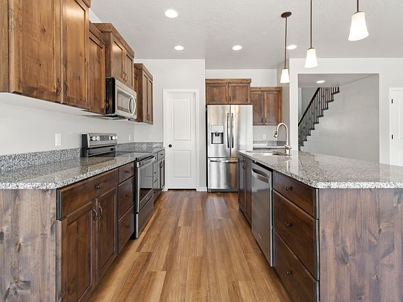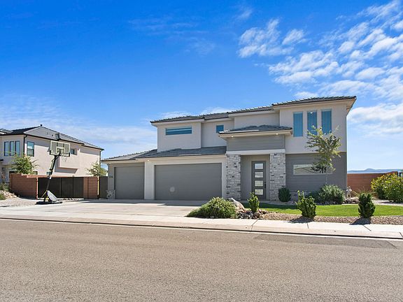 Move-in ready two-story home located in the desirable Sage Canyon neighborhood, just minutes from the new Career Tech High School, Sand Hollow State Park, St. George Regional Airport, and plenty of hiking, biking, and off-roading trails. Fully enclosed backyard and a 16' gate entrance which provides ample space for RV parking. The backyard has an unobstructed southern view that is not expected to be blocked by future development. The open floor plan includes two-tone paint, upgraded EVP flooring, and 9' ceilings that are prewired for ceiling fans. The Kitchen offers upgraded stainless steel appliances and granite countertops, while the Master Bath boasts separate master vanity areas surrounded by granite countertops, while the Master Bath boasts separate master vanity areas surrounded by granite countertops, a walk-in tile shower, and a large, jetted tub. The Whirlpool Washer and Dryer is also available upon request.