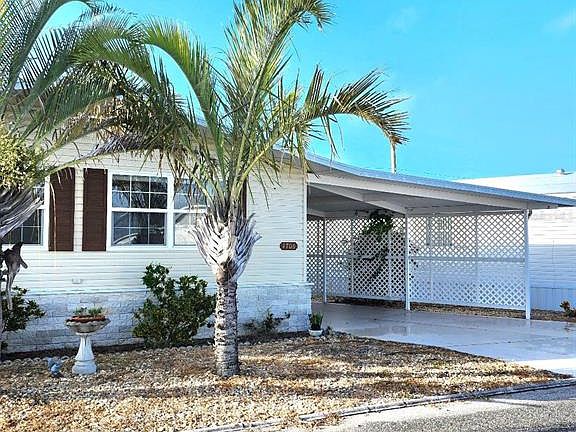 Feels like HOME! Open Concept with a spacious Single Family home feel. This is a well-maintained 3 Bedroom, 2 Bath, 2004 Jacobsen Chancellor III model Manufactured Home on a Lot and a Half in the highly desired, active 55+ Trailer Estates community. High ceilings and a large window wall create an airy Living Room. Abundant Kitchen cabinetry wraps around to the Dining Room area to form a built-in buffet, while an eat-in Dinette space adjacent to the kitchen is convenient for informal meals. Roomy Primary Bedroom with wall-to-wall closet and ensuite bath. Bonus space with built-in shelves for Office/Den can be closed off from the rest of the house for a quiet work space. Inside laundry closet. 2x6 Hurricane Resistant construction, built on a solid concrete slab extending under the entire unit, creates tons of storage under the house. Double paned windows. New Roof shingles, 2024. AC, 2017. Oversized carport allows for covered outdoor space and plenty of parking. Rarely do you find anything like this on the market! Located just down the street from the heart of the social scene; just a short walk to access the community pool, recreation buildings, shuffleboard, fitness center, and all the wonderful park amenities. You own the land. Boaters have direct access to Sarasota Bay from the Marina. Trailer Estates community offers so many options for a great day! Enjoy the large, heated community pool, hot tub, gym and wood shop. The community buzzes with pickleball, shuffleboard, kayaking, horseshoes, bocce, dancing and more. A US Post Office on site. 10 minutes to the SRQ Airport. Convenient to shopping, restaurants, the Arts and everything in Bradenton/Sarasota. Bring offers!