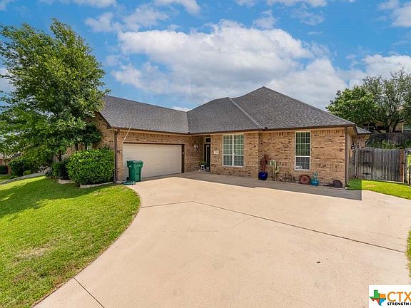 Come Check out this Hidden Gem on a Cul-de-sac in Harker Heights, TX. Its Spacious floor plan and Extremely High Ceilings are just a few favorites. It's a 4 bed/2 bath 2-car garage. A Open floor plan with extra touches throughout - granite counters, crown moulding, recessed lighting, gas fireplace. Kitchen features an expansive center island with seating, granite counters, electric cooktop, Eat in Kitchen area, stainless steel appliances and Extra large pantry. Lots of windows provide beautiful natural light. The Bonus room can be used as a Office or Formal Dining room. The master suite includes a Huge but Cozy Nook. Maybe an office, workout space, dog kennel home, or a nursery, Lots of potential. Master suite also includes a double vanity, garden tub and separate shower, and a walk-in closet. The extended patio is ready for those BBQ's with your family and friends. AND this is a No HOA development. Home has a New Roof 6/23, New HVAC 6/22, and New Hot Water Heater 4/23.