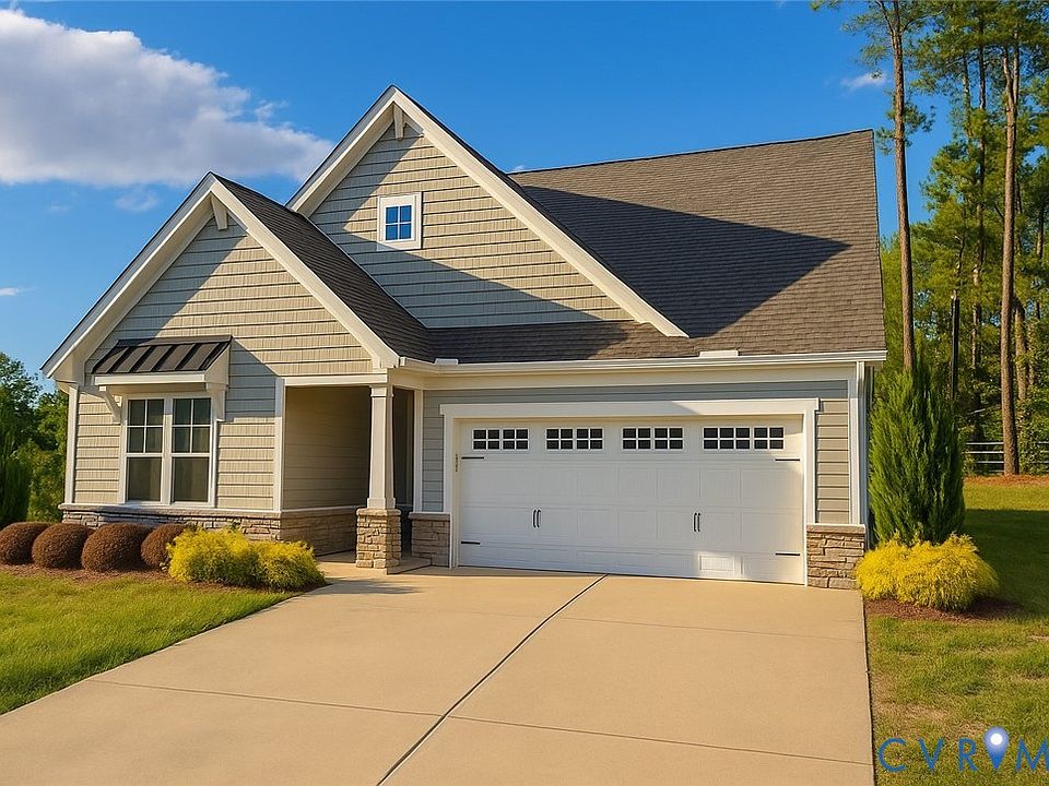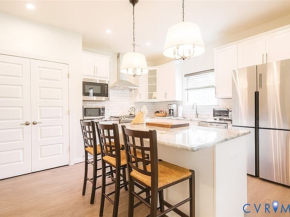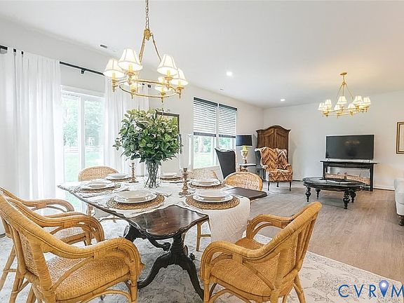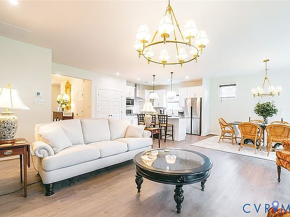 Located in Twin Rivers, the newest neighborhood in Meadowville Landing, this beautiful riverfront community offers resort-style amenities including a water park and pool, scenic ponds for fishing, a river walk, and a community dock along the James River. With easy access to I-295, I-95, and Route 10, you’re just minutes from everything Richmond has to offer! The kitchen features a custom range hood, large island with granite countertops, gas cooking, and plenty of pantry space. It flows into the dining area and family room, creating an open layout perfect for gatherings. Elegant chandeliers add a stylish touch.The owner’s suite offers a tray ceiling, walk-in closet, and private bath with a frameless glass shower, double vanity, and ceramic tile finishes. The second bath includes a soaking tub with a tile surround. All bedrooms have soft low-pile carpet and custom blinds for comfort. A patio off the dining area provides a great space for relaxing or entertaining outdoors.