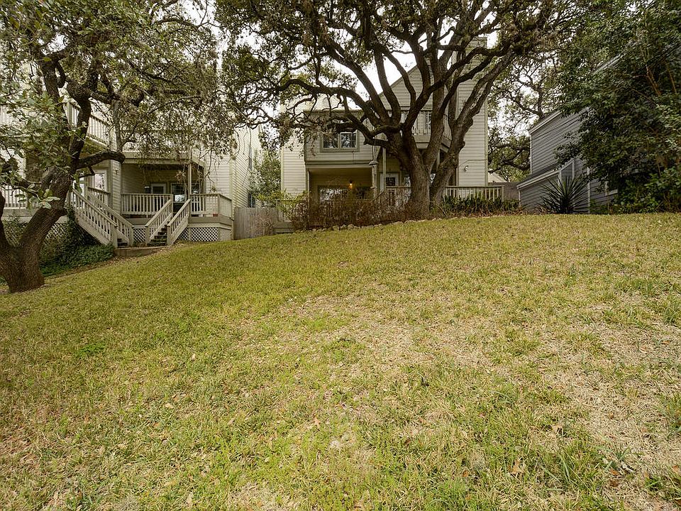 The best of a classic Travis Heights four condo project built in 1985. Perched on a hilltop with towering live oaks overlooking Newning Ave. towards Stacy Park and just three blocks to South Congress Ave. Lives more like a house with expansive front lawn and front deck, rear covered parking and private fenced yard with back patio. Master has been expanded with additional space for dressing area and or study. Great storage: pantry, two master closets and soaking tub.