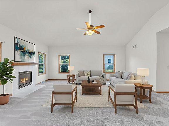 AWESOME OPEN CONCEPT QUALITY BUILT RANCH IN DESIRABLE SPRING MEADOW SUBDIVISION!! This beautiful home is fresh and clean and move in ready!! It is airy and bight with a dramatic vaulted ceiling! 3 bedroom 2.5 bath split ranch floorpan. It is a perfect layout for entertaining. HUGE kitchen, HUGE living room.. IT''S AMAZING!! Kitchen has lots of counter space, cupboards, stainless appliances and a pantry. Brand new carpet in the great room and bedrooms. There is a lovely gas fireplace. Fantastic curb appeal. A beautifully landscaped yard with a shed, patio and an awesome covered outdoor bar area! 3 car garage as well. Conveniently located right in the middle of town. Plus a most of house Generac generator along with an inground sprinkler system :) Hurry, this one will not last long