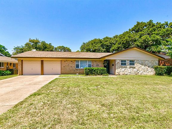 ADORABLE HOME IN HIGHLY DESIRABLE EULESS NEIGHBORHOOD!! Updates include fresh paint inside and out, recent carpet in bedrooms, kitchen sink and faucet, tiled front porch! 6-panel doors throughout. Smart NEST thermostat and garage opener! Hardwood flooring in versatile 2nd living room, currently used as office and piano room ~ could be formal dining room. Wood laminate flooring in main living area, kitchen, dining, hallway. Large utility room with storage. Huge back yard with extended patio, storage shed! Near-by beautiful Wilshire Park with pond, fountain, play area, walking path. Minutes to hwy 121-183 and shopping. Don't miss this one!